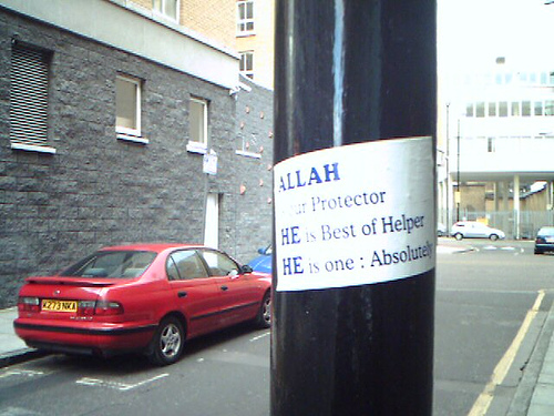 (Stuck to a lamp post in side-street in Whitechapel near Aldgate, East London)