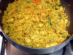 I haven’t put up a new recipe for quite while. Not because I haven’t been cooking – because I have. Practically every day. It’s just that I haven’t had the time to take pictures and publish. But I made the time tonight. Chicken Biryani – a quick stove-stop method – with asparagus and mushrooms on this occasion. Equally tasty without the chicken for a vegetarian experience – and you can use any combination of vegetables that you have to hand in your fridge. It really is very easy to make. Trust me!
