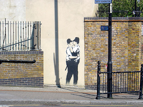 Anyway – I decided to spend the day at one of London’s many famous parks. Battersea Park in fact. But on the way – driving through the streets of London on the way there – I happened to spot what looked like a sophisticated piece of graffiti on the wall of a house at the North end of Ladbroke Grove – which is a relatively well-known street that connects the Harrow Road in North Kensington to the Notting Hill area in the West End of London.