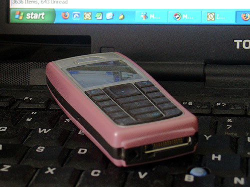 Well, I was walking to Marks & Spencer for a sandwich at lunch time the other day in Slough – and I noticed a mobile phone accessories stall in the shopping mall. So I stopped and looked to see if they had any “alternative” snap-on covers for the Nokia 6230 – and indeed they did have. £5 a cover. Or two for £8. So I bought one. I figured that if I could replace the commonly-owned black cover with a different colour – then the chances of anybody mistaking their phone for mine – or me mistaking my phone for someone else’s would be minimised.
