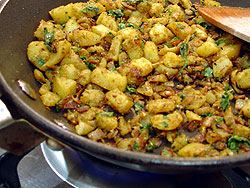 If you are into cooking North Indian (especially Punjabi) food regularly then you will almost always have the two most basic of essential of fresh (or decaying as the case may be) ingredients in your cupboard – and that is potatoes and onions. So – if your cupboards and fridge has run bare of anything else, it is these things that you will resort to in order to cook up a dinner of sorts.